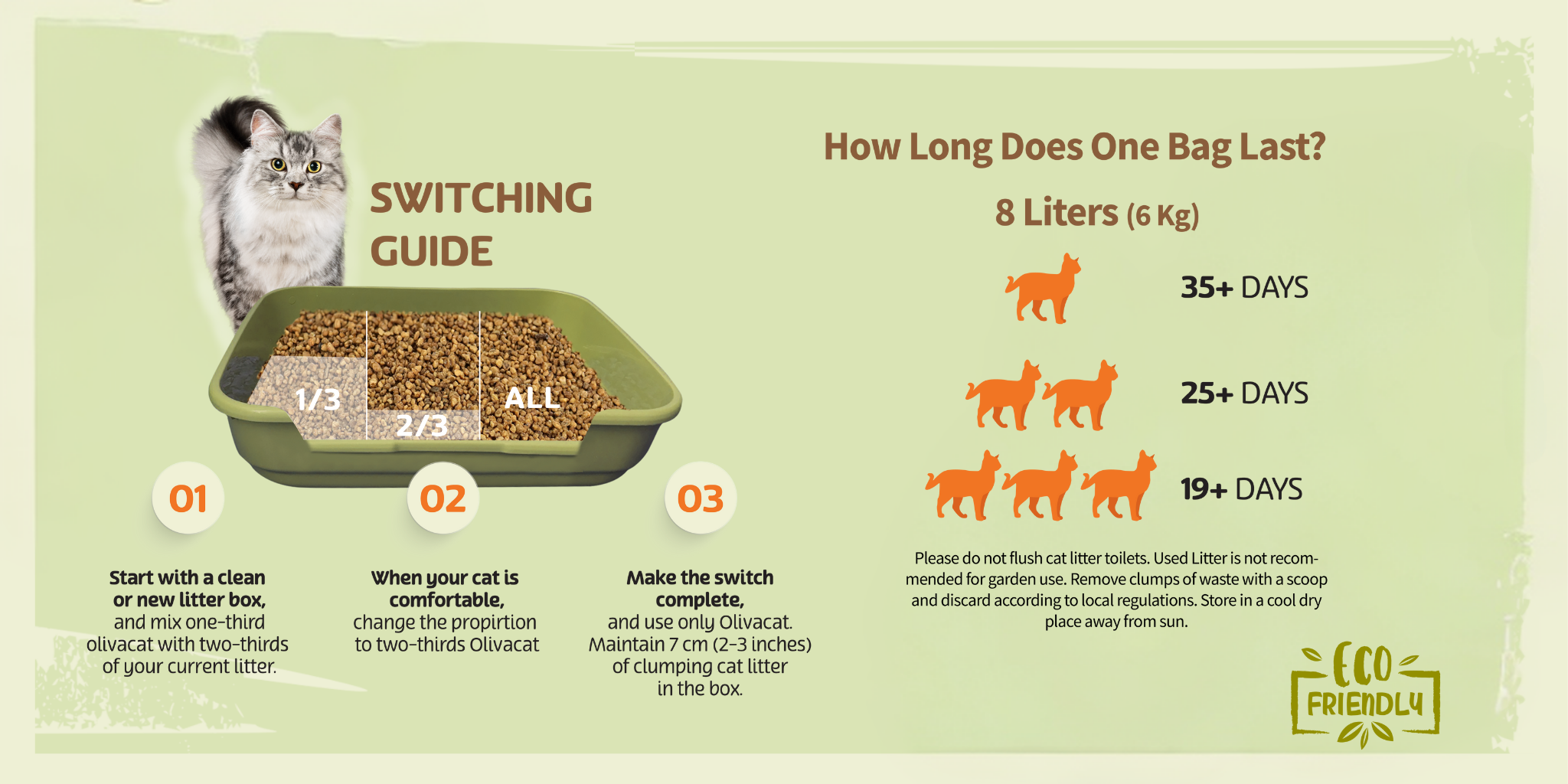 OlivaCat Cat Litter is a natural and organic litter made from 100% olive pits, free from toxins. It efficiently absorbs liquid, clumps easily, and prevents odors. Environmentally friendly and safe for your feline companions, it's a healthy choice for your home.